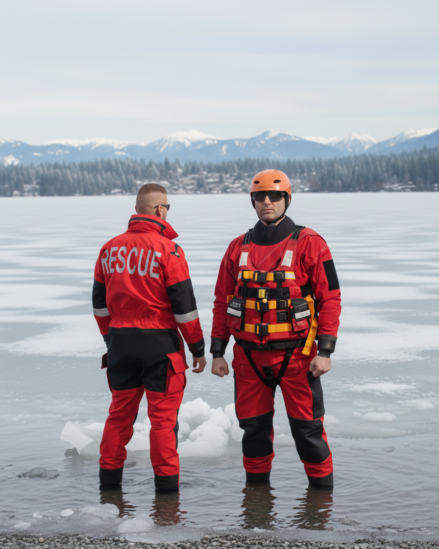 Skafander ratowniczy wodno-lodowy to specjalistyczny ubiór ochronny zaprojektowany do działań w ekstremalnie zimnych akwenach – zarówno otwartych, jak i pokrytych lodem. Chroni ratownika przed wychłodzeniem i umożliwia bezpieczne poruszanie się po lodzie oraz w wodzie o temperaturze bliskiej 0 °C.